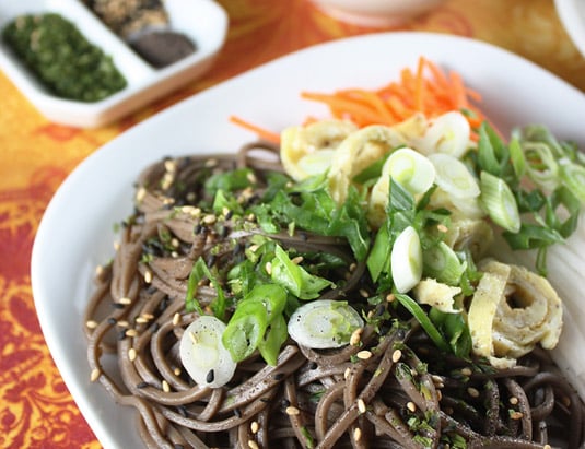 Hiyashi soba salad recipe adapted from Globetrotter Diaries and About.com – Japanese Food recipes.
